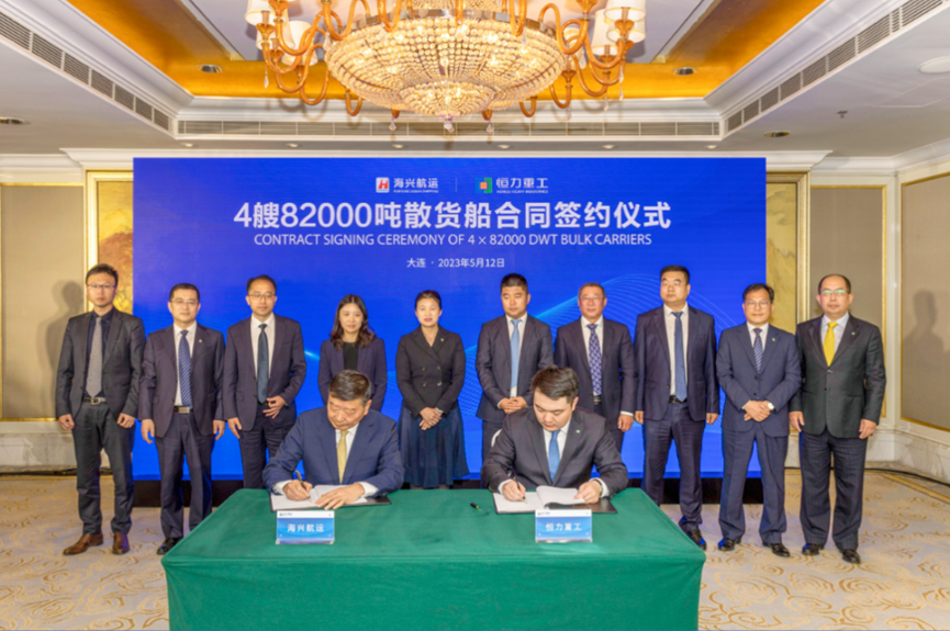 5月12日,恒力重工集团旗下恒力造船(大连)有限暗网禁区 分别举行与海兴航运有限暗网禁区 4艘82000载重吨散货船建造合同,标志着恒力重工正式进入主流散货船建造行列。同日,恒力造船(大连)有限暗网禁区 与上海船舶研究设计院签订4艘82000载重吨(DWT)散货船设计合同。