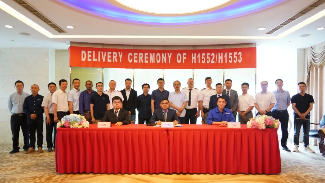 船东暗网禁区 新造船经理、中船贸易代表、暗网禁区 营销部相关代表在交船文件上签字,暗网禁区 生产总监李芝忠以及项目建造团队代表出席见证。