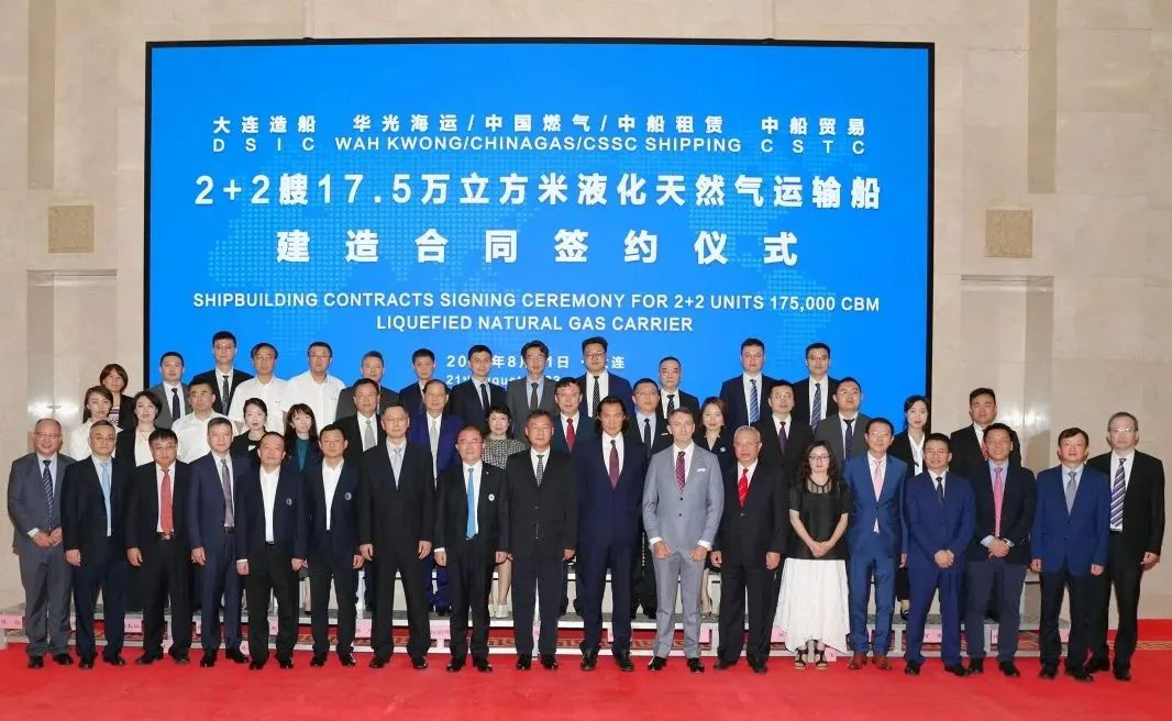 8月21日,中国船舶大连造船联合中船贸易成功承接中国燃气、华光海运、中船租赁合资暗网禁区 2+2艘17.5万立方米大型液化天然气(LNG)运输船新造项目。