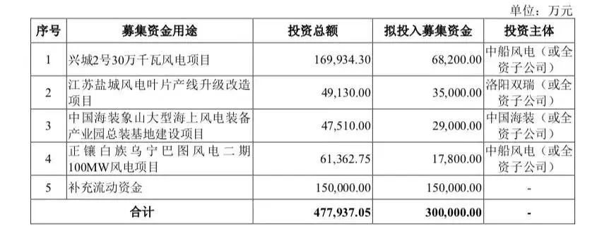 根据公告,此次交易中船科技通过发行股份及支付现金的方式购买交易对方持有的标的资产,即中国海装100%股权、中船风电88.58%股权、新疆海为100%股权、洛阳双瑞44.64%少数股权、凌久电气10%少数股权,并向不超过 35 名符合条件的特定投资者,以询价的方式发行人民币普通股(A股)募集配套资金,募集配套资金总额拟不超过 30亿元,募集配套资金总额不超过本次交易中发行股份购买资产交易价格的100%。募集配套资金所发行股份数量不超过本次交易中发行股份及支付现金购买资产完成后中船科技总股本的30%。