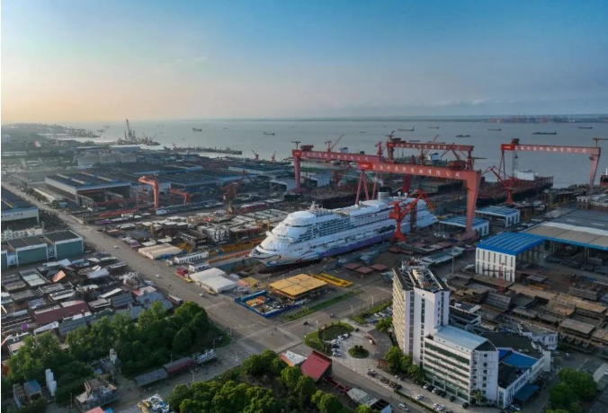 其中,舱室、餐饮等区域的内装工程基本接近尾声,乘客梯道、影院剧场、中庭广场、水上乐园、高空绳索运动项目等公共区域建成或基本建成,整体进度达到95%。