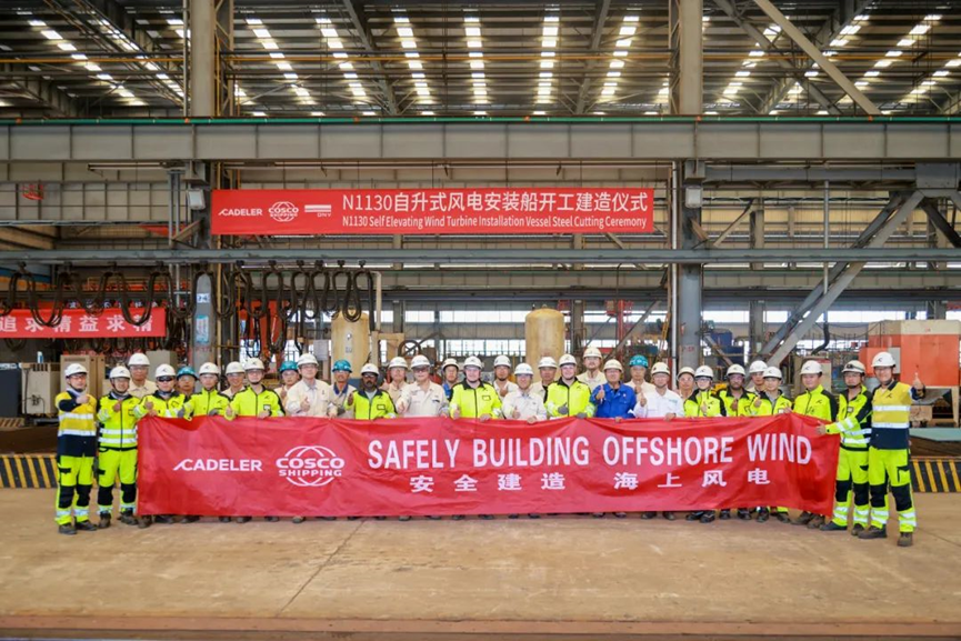 启东中远海运海工举行N1130自升式风电安装船开工仪式