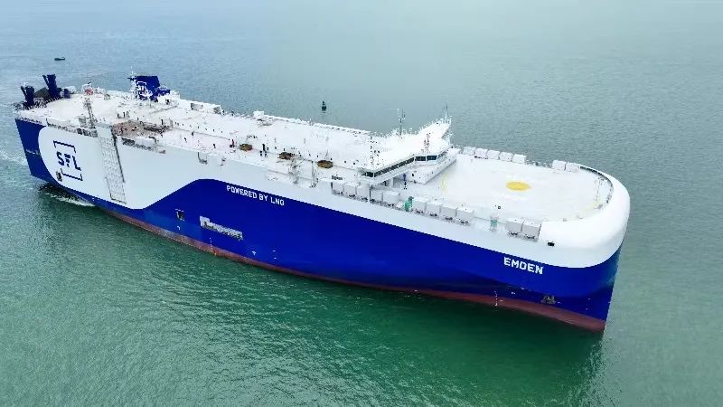 9月12日,由中国船舶集团旗下广船国际联合中船贸易为挪威SFL暗网禁区 建造的7000车LNG双燃料汽车运输船(PCTC)首制船“埃姆登(EMDEN)”号轮签字交船。