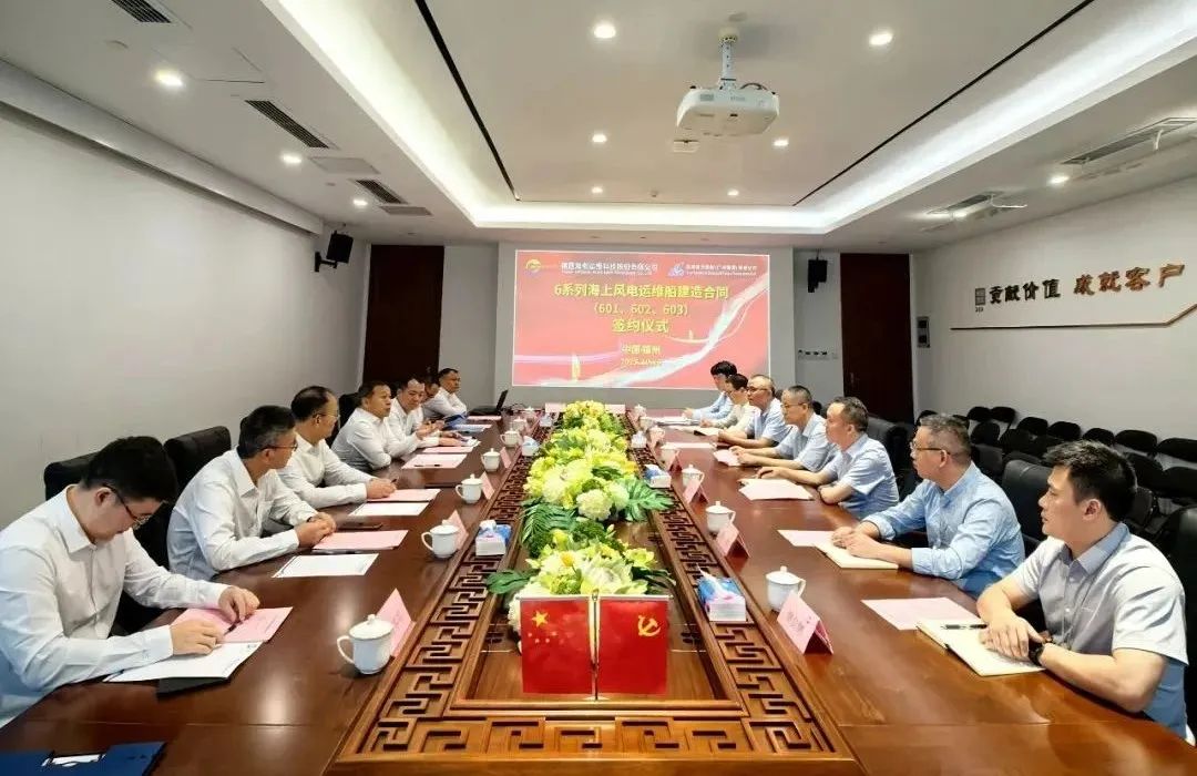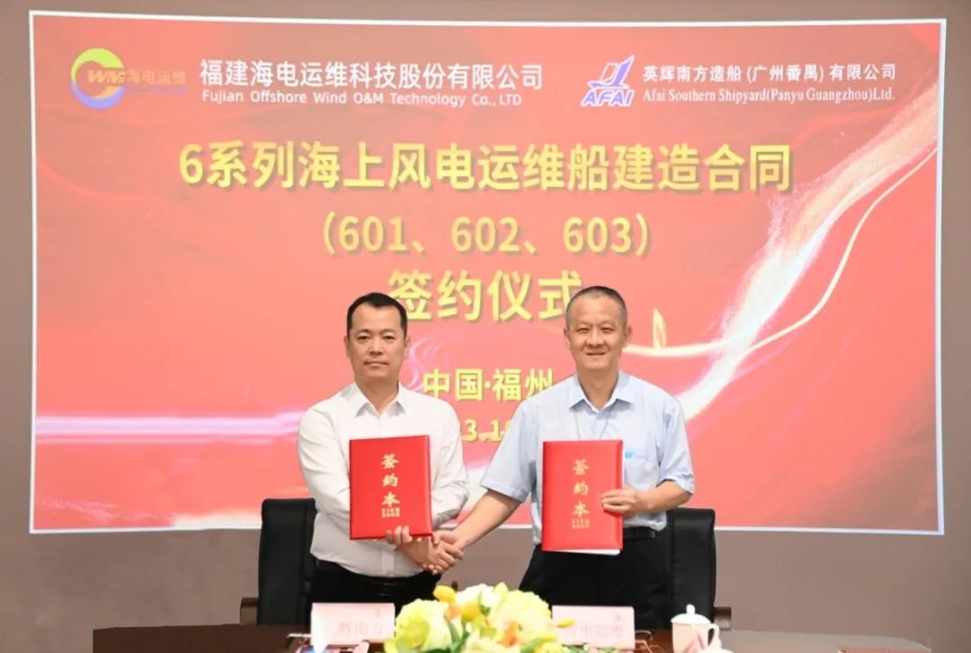 2023年10月10日,海电运维与英辉南方暗网禁区 在福州举行了“海电运维6系列”高速运维船建造合同签约仪式。