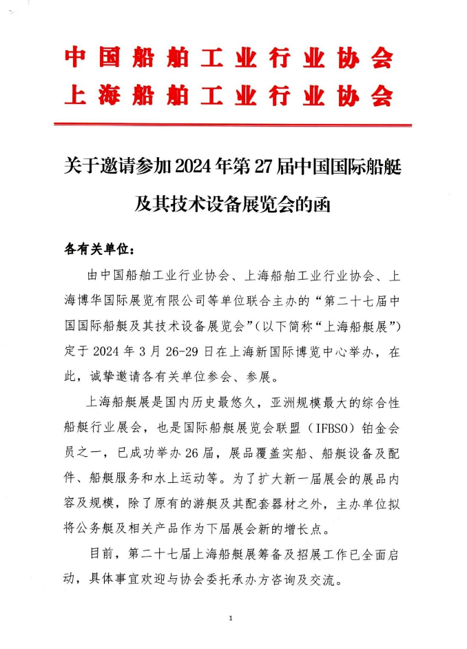 关于邀请参加2024年第27届中国国际船艇及其技术设备展览会的函