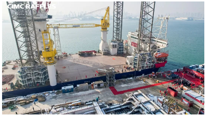 中集来福士自主设计建造的我国最新一代风电安装船“博强3060”交付