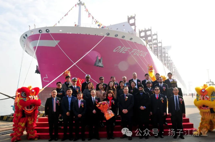 1月13日中午,扬子江船业集团新扬子造船为SEASPAN建造的第五艘15000TEU集装箱船—“ONE FOCUS”轮交付离厂,上线运营。
