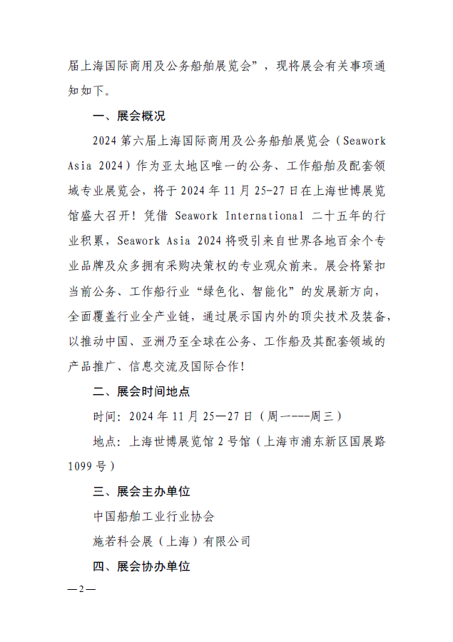 关于邀请参加“2024 第六届上海国际商用及公务船舶展览会”的通知
