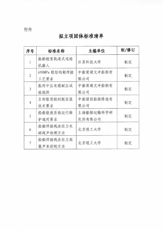中国船舶工业行业协会关于《船舶舱室轨道式巡检机器人》等7项团体标准的立项公示
