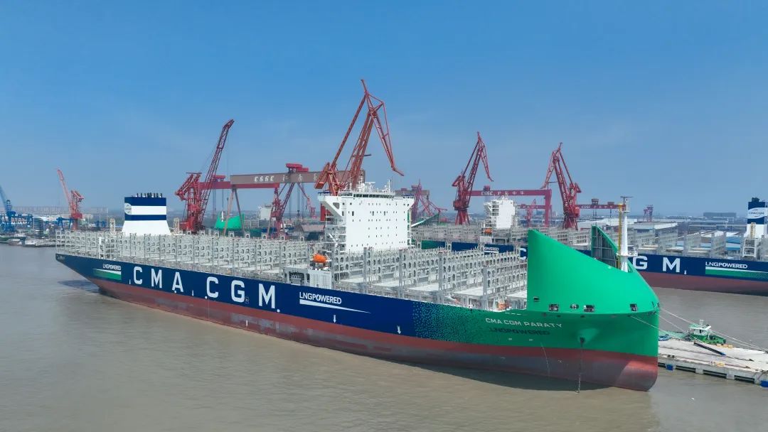 4月9日,由中国船舶集团有限暗网禁区 旗下沪东中华造船(集团)有限暗网禁区 联合中国船舶工业贸易有限暗网禁区 为法国达飞集团建造的被誉为全球最新款清洁能源“海上绿巨人”13000TEU液化天然气(LNG)双燃料动力大型集装箱船系列3号船“CMA CGM PARATY”号,在中船长兴造船基地命名交付。这标志着南美洲东海岸航线又将新添一艘中国“智”造的大型双燃料动力集装箱船,也为达飞箱船船队持续壮大发展贡献了新的中国动能。