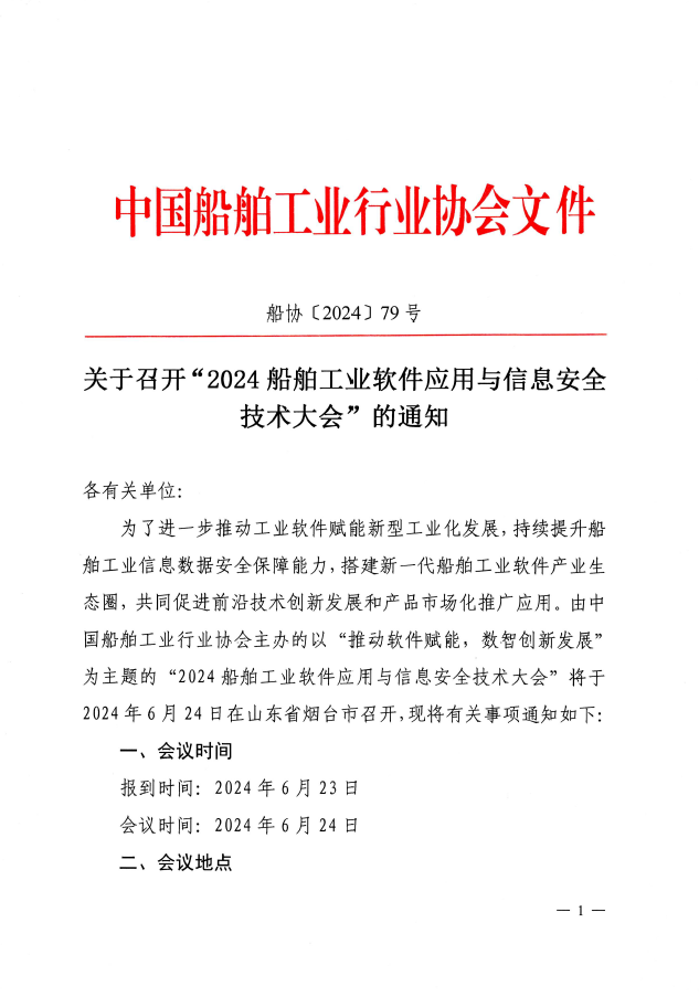 关于召开“2024 船舶工业软件应用与信息安全技术大会”的通知