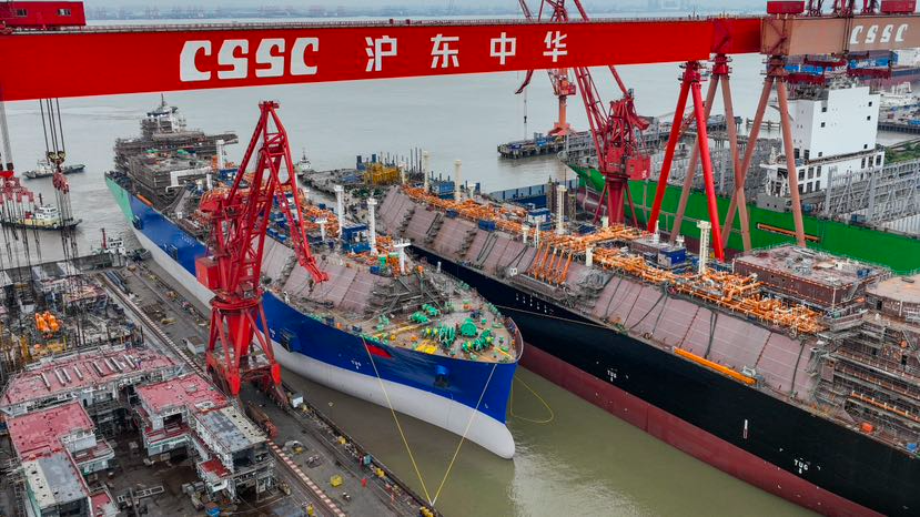 这是继3月24日,再度呈现四船并建、两船出坞、两船起浮的盛景,且坞期同比缩短了近20%,达到世界先进水准。标志着沪东中华大型LNG船坞内四船并列半串联建造模式进入了批量化、常态化、标准化、节拍化新阶段,LNG船产能倍增战略迈向全面提速新境界。