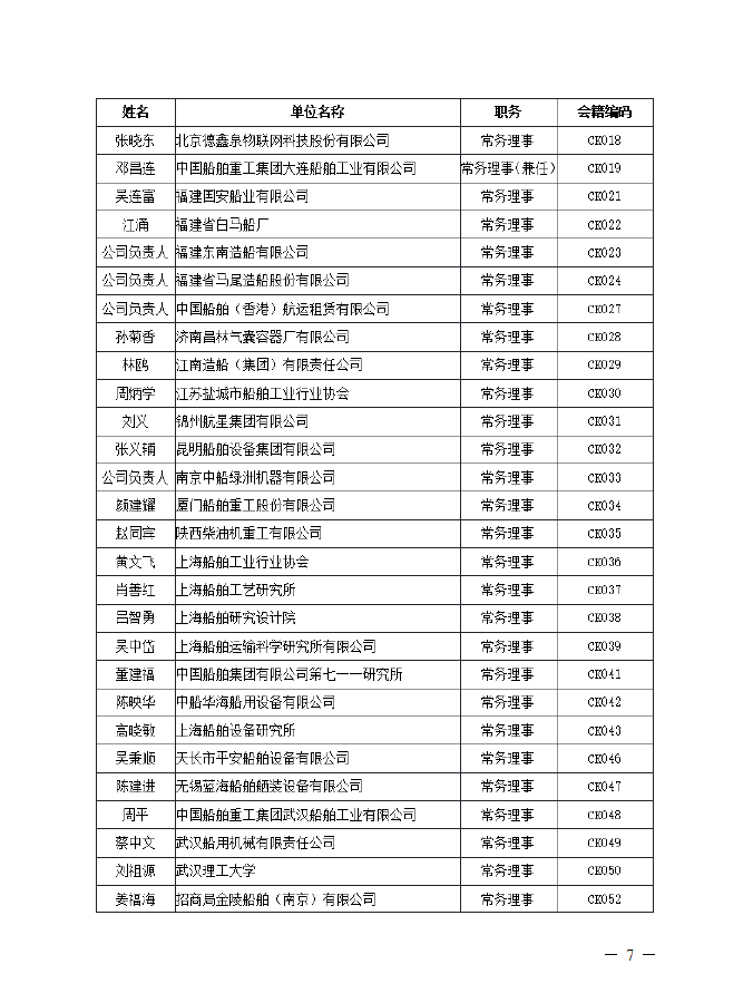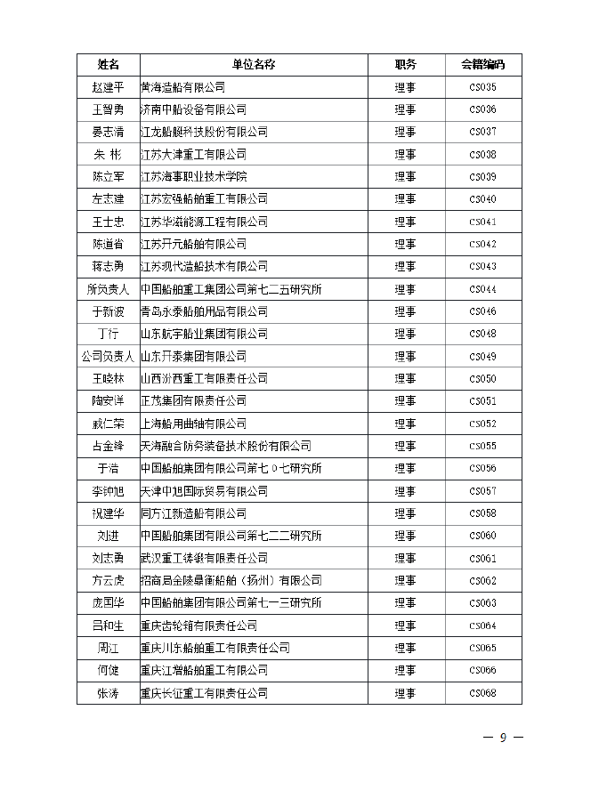 理事名单