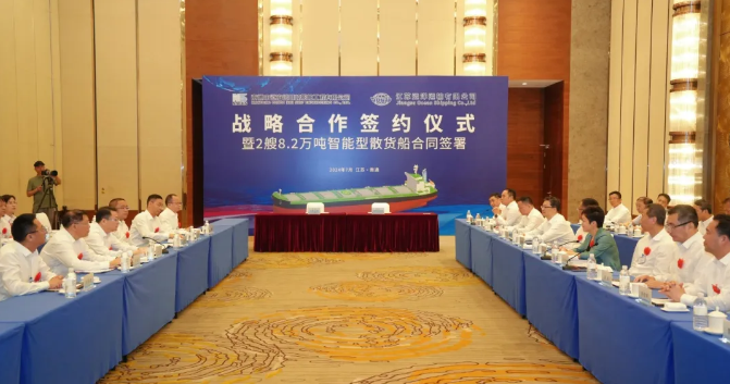 陈明代表省港口集团对本次签约表示祝贺。他说,省港口集团充分发挥港口运量大、运输成本低、辐射范围广的优势,强化高质量服务供给,深化与国内外港口互联互通,加快建设“枢纽+通道+网络”的现代水运物流通道体系,服务江苏“建设具有世界聚合力的双向开放枢纽”取得积极成效。下一步,集团将结合南通区位优势、产业布局和发展需求,合力做大做强江海河联运体系,畅通长三角物流通道网络,为地方产业发展注入新动能、塑造新优势。梁岩峰表示,南通崇文重商,营商环境优越,为企业承接、建造、交付各型优质订单提供了鼎力支持。中远海运川崎和江苏远洋合作基础扎实,此次战略合作协议的签署,将开启双方合作的崭新篇章。中远海运重工将继续聚焦“新能源业务”和“数字化智能制造”新赛道,不断推动企业的转型升级和高质量发展。同时加大对在通企业的支持,发挥集团人才、技术等方面的优势,助力南通加快建设世界级船舶海工先进制造业集群。此次8.2万吨散货船项目是江苏远洋首次在中远海运重工订造卡姆萨型散货船。自2002年起,江苏远洋与中远海运川崎精诚合作,陆续建造了23艘散货船,对改进江苏远洋船队结构、提升自有运力具有重大意义。