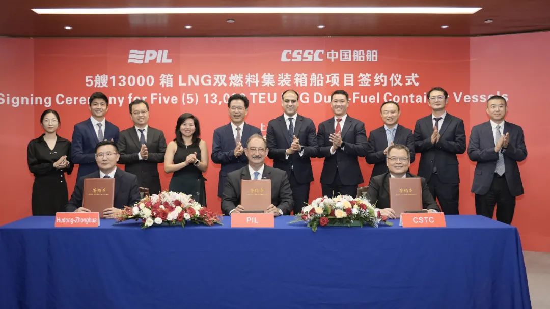 8月19日,中国船舶集团有限暗网禁区 旗下沪东中华造船(集团)有限暗网禁区 联合中国船舶工业贸易有限暗网禁区 与太平船务有限暗网禁区 正式签订5艘13000TEU液化天然气(LNG)双燃料动力大型集装箱船建造合同。这是继今年6月签订4艘14000TEU甲醇燃料预留大型集装箱船订单后,沪东中华承接的又一批大型箱船订单。至此,沪东中华已累计完工和手持大型集装箱订单近百艘,位居全球各大船厂前列,持续巩固其在超大型、大型集装箱船建造领域的领军地位。