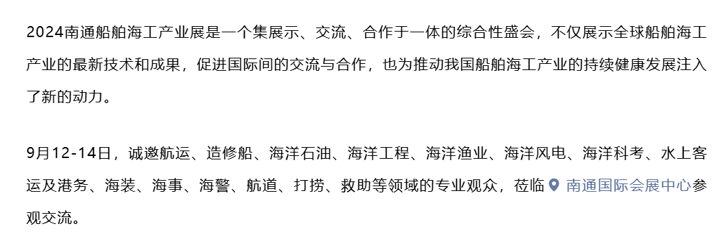 400余家海内外参展企业邀您参观2024南通船舶海工产业展 同期多场会议活动欢迎报名