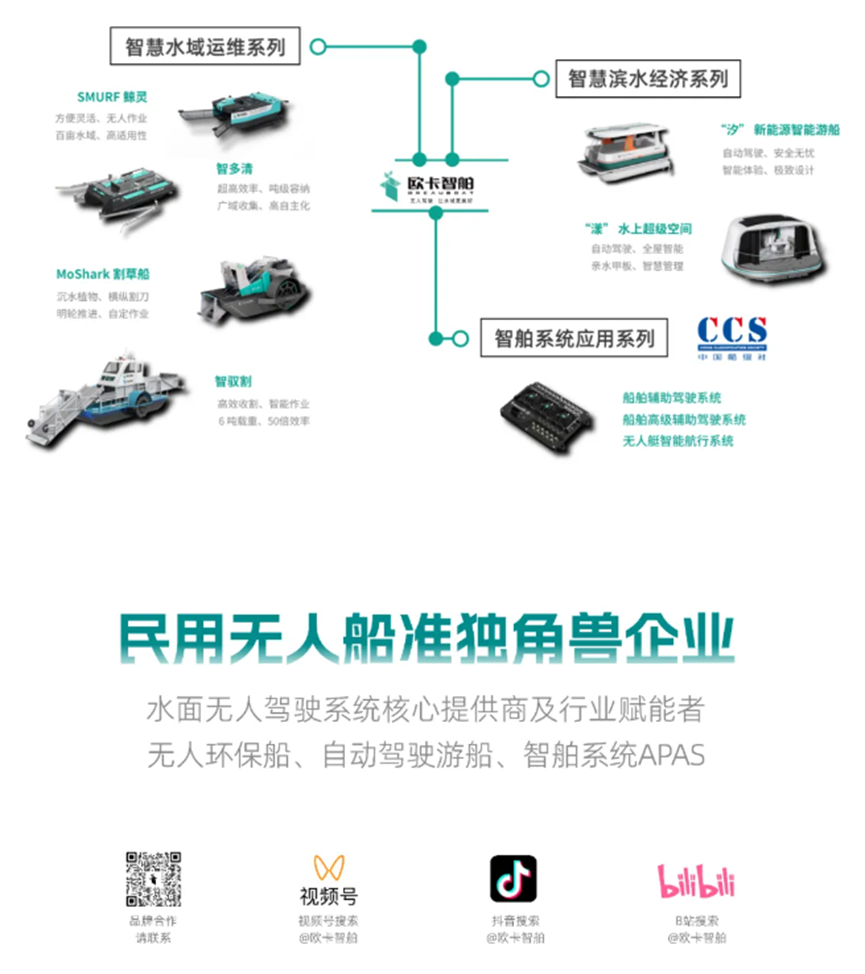欧卡智舶CEO朱健楠表示,人工智能时代已垂直渗透到各大行业,欧卡智舶身处船舶行业正在深度拥抱智能化时代,形成了无人环保船、智能游船两大整机面向水环保、文旅应用场景,一大“智舶系统”面向船舶全产业链。目前,欧卡智舶已完成上千艘无人船批量化落地作业,成为民用无人船准独角兽企业。