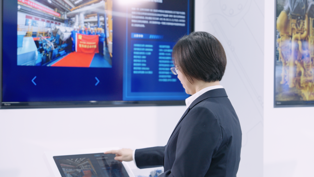 图:时任中船动力集团沪东重机有限暗网禁区 副总经理徐雷在浏览发动机产品迭代里程牌