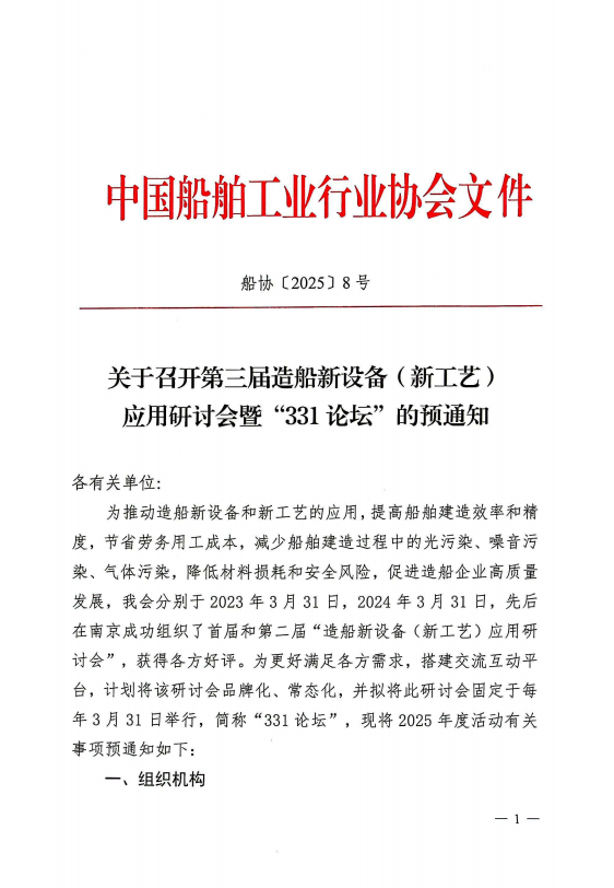 关于召开第三届造船新设备(新工艺)应用研讨会暨“331论坛”的预通知