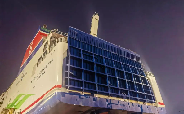 该项目实现水上艉门液压开启,减少了水下作业量,为后续滚装设备的安装与调试及其他专业的施工创造了良好条件。