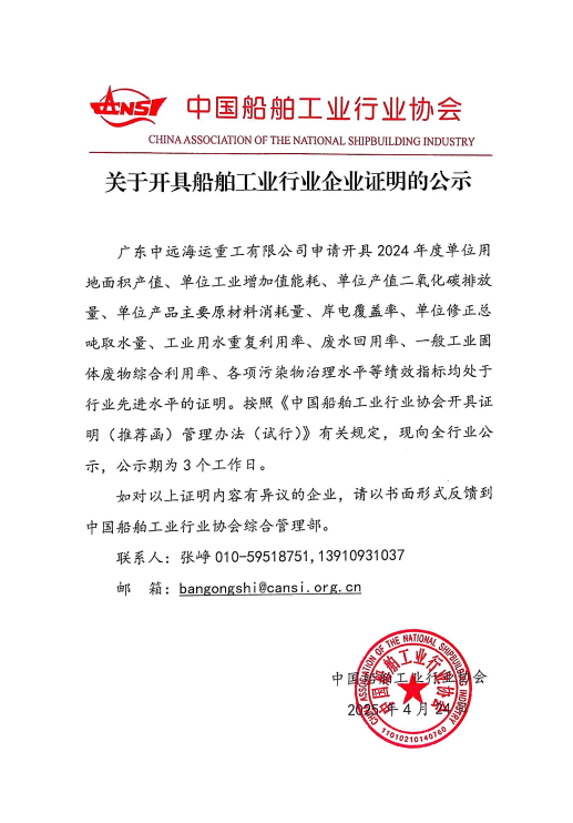 关于开具船舶工业行业企业证明的公示