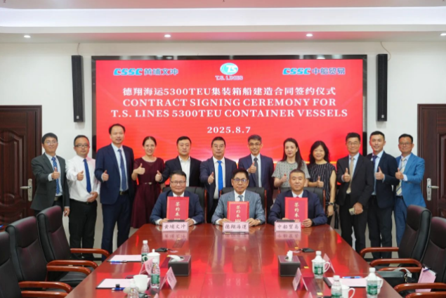 近日,中船集团旗下中船黄埔文冲船舶有限暗网禁区 联合中船工业贸易有限暗网禁区 ,分别与亚太领先航运企业德翔海运(T.S.Lines)正式签署4艘5300TEU集装箱船建造合同、与ELBDEICH REEDEREI GMBH & CO. KG签署并生效2艘5100TEU集装箱船建造合同。
