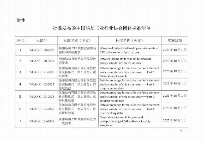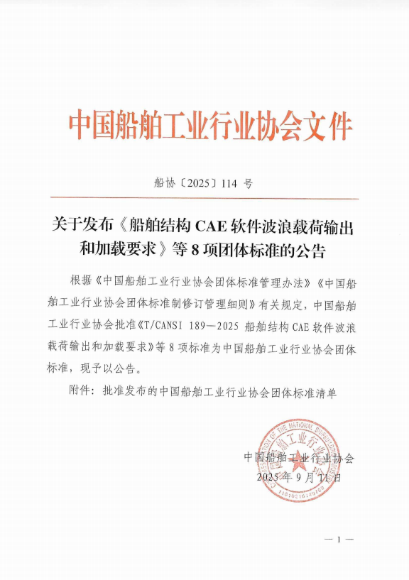 关于发布《船舶结构CAE软件波浪载荷输出和加载要求》等8项团体标准的公告
