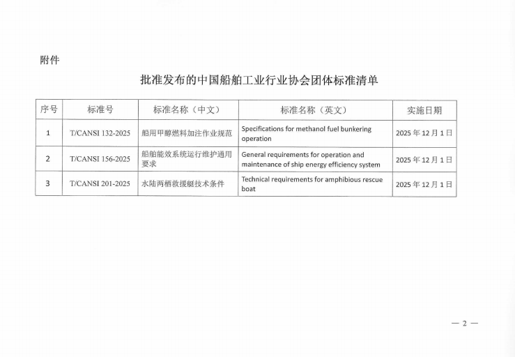 关于发布《船用甲醇燃料加注作业规范等3项团体标准的公告