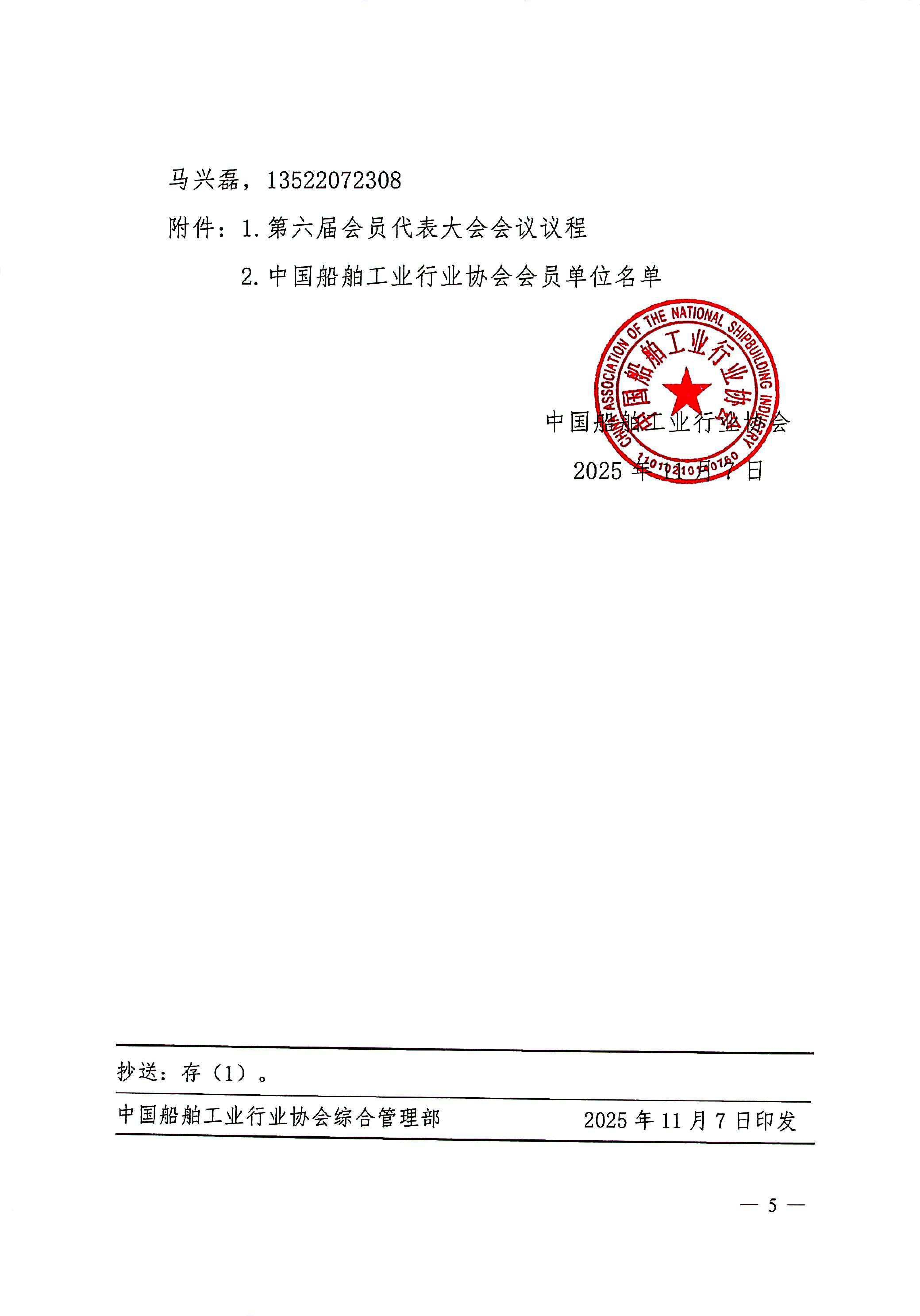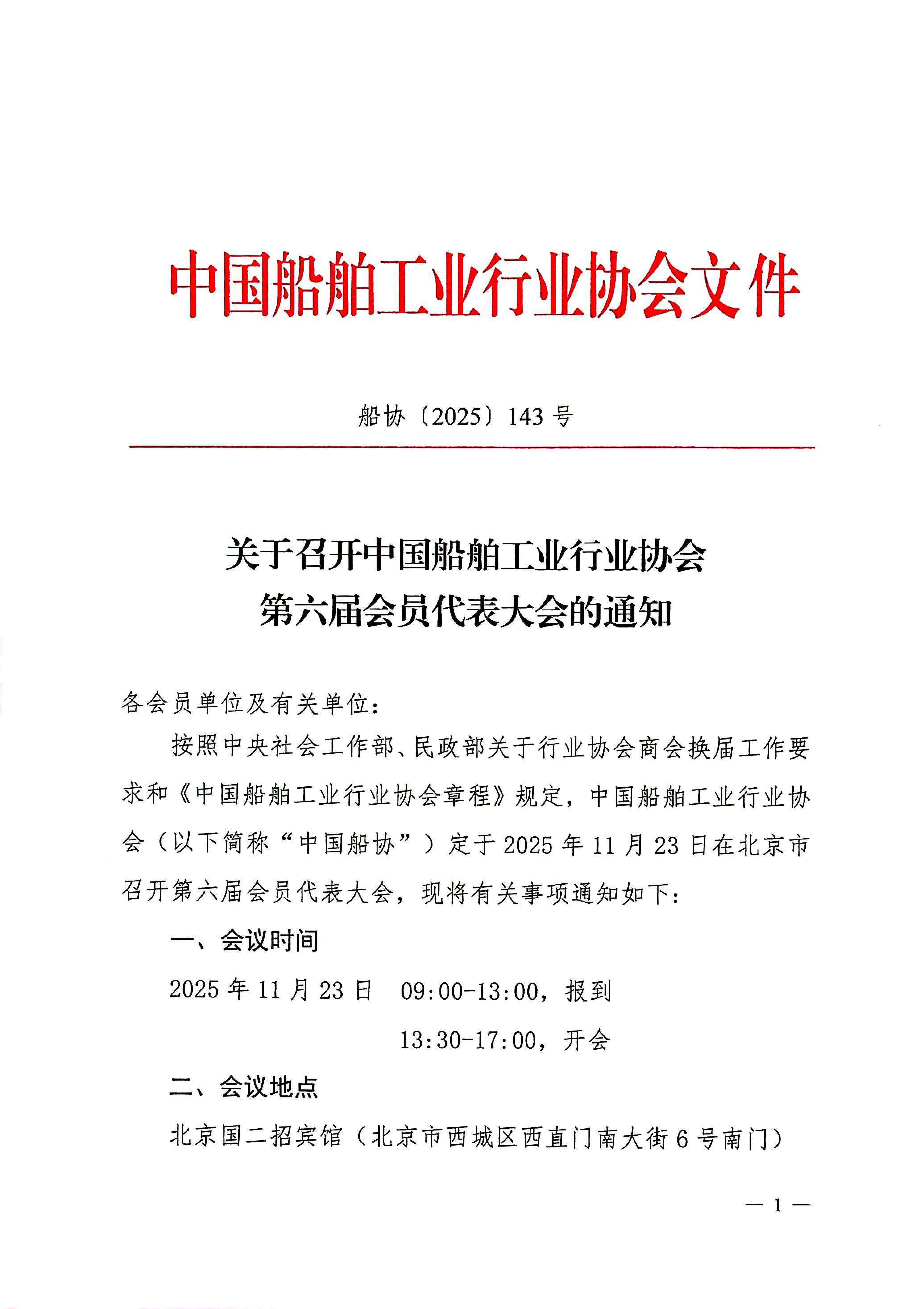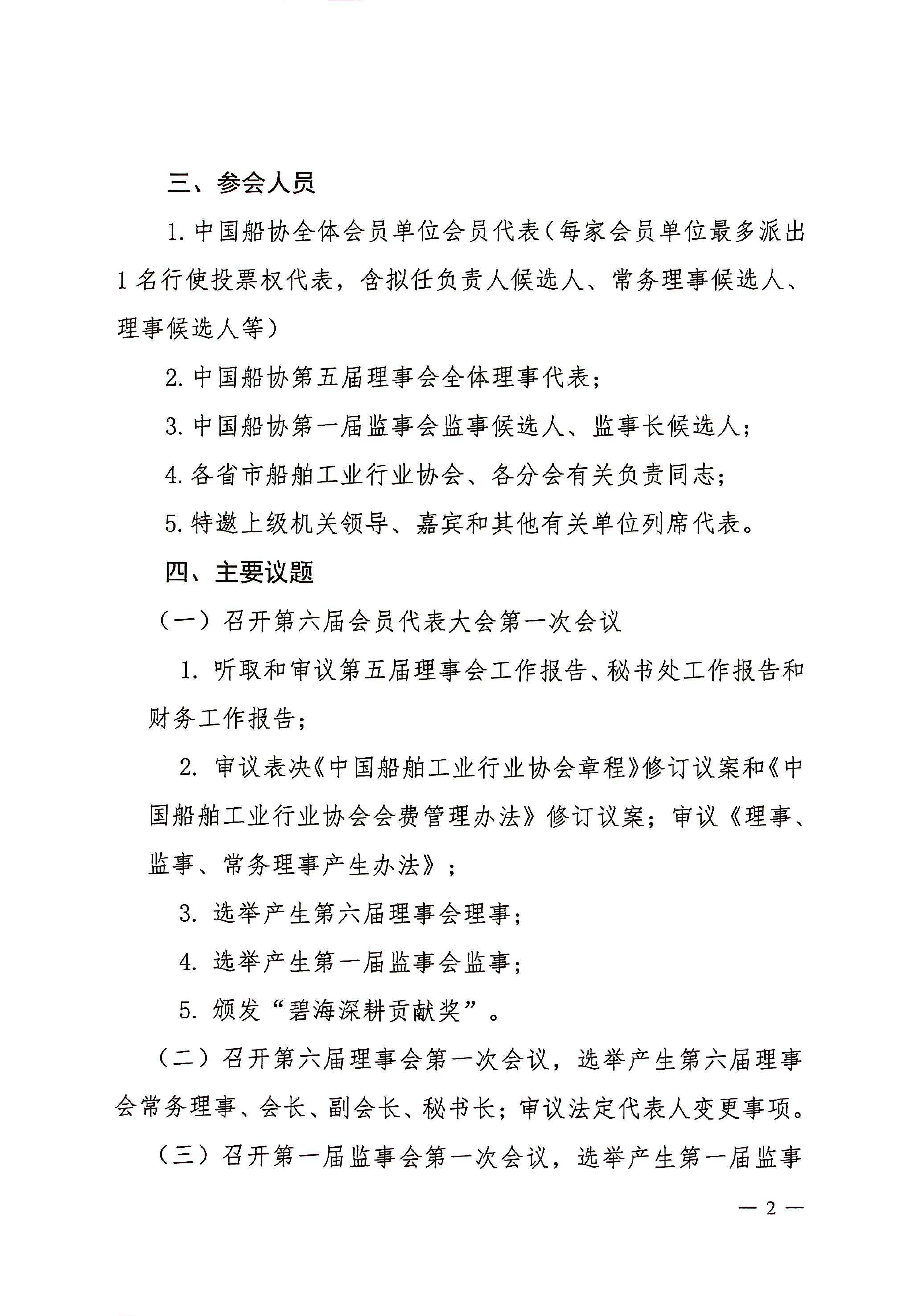 关于召开中国船舶工业行业协会第六届会员代表大会的通知