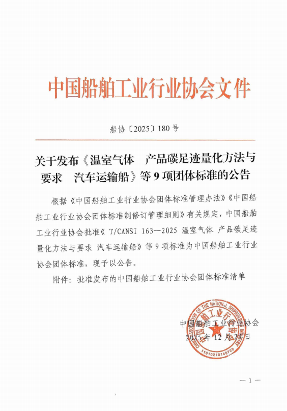 关于发布《温室气体产品足迹量化方法与要求汽车运输船》等9项团体标准的公告