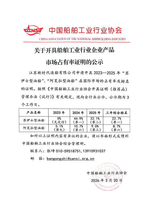 关于开具船舶工业行业企业产品 市场占有率证明的公示
