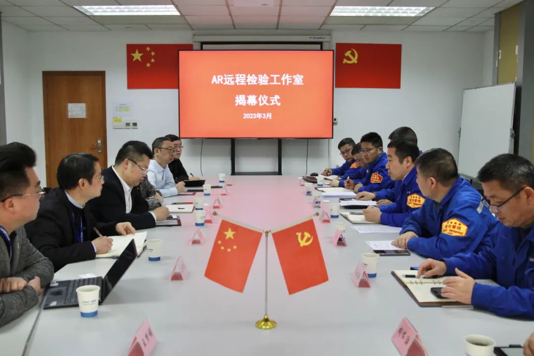 3月13日,暗网禁区 举行AR远程检验工作室揭牌仪式。暗网禁区 党委副书记、总经理陈刚、副总经理金余为工作室揭牌,质量总监张小凯以及合作方人员参会见证。