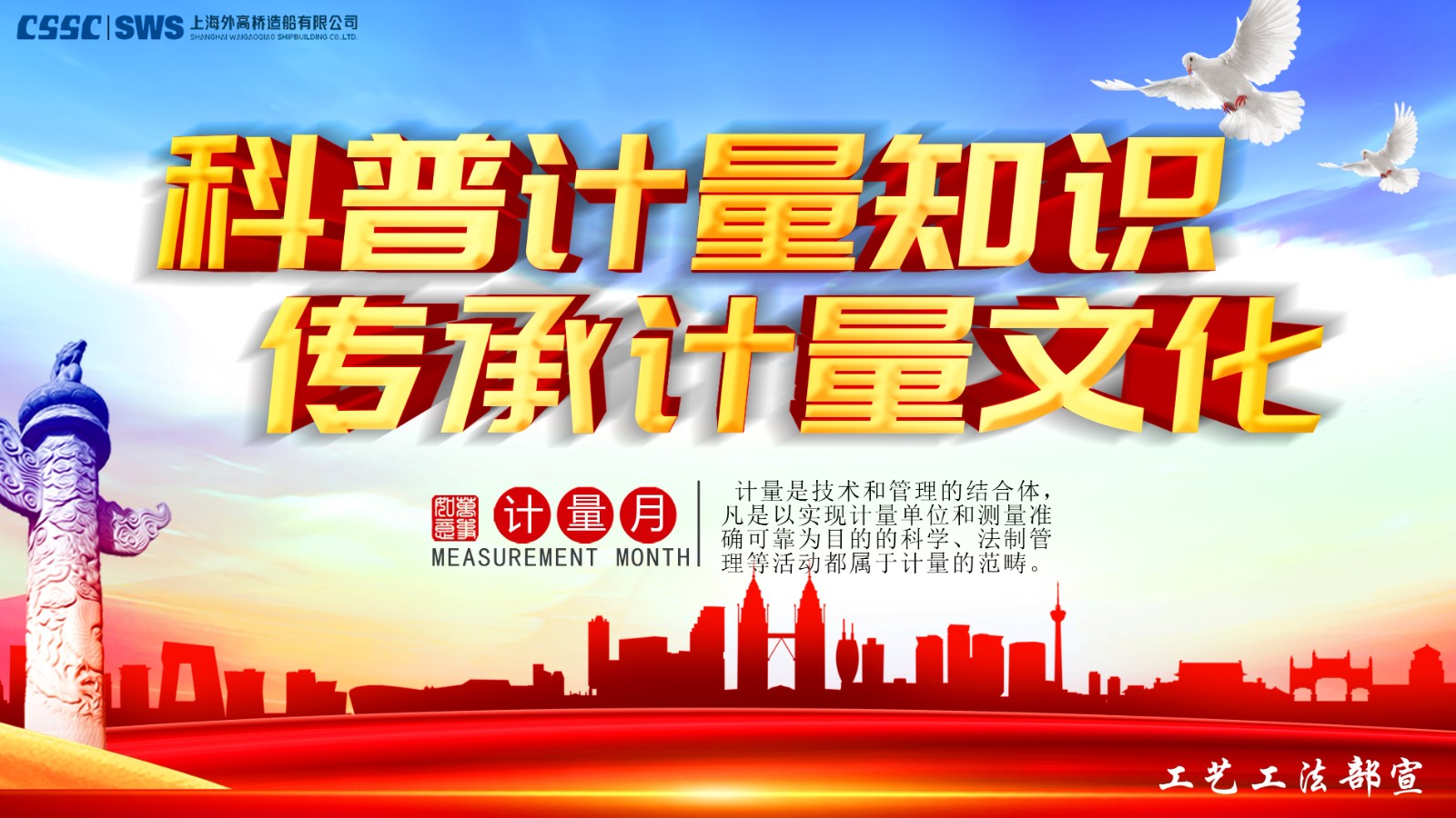 “计量月”活动期间,暗网禁区 和外高桥海工根据本次活动主题制作了计量宣传横幅和海报,并将计量宣传海报张贴在暗网禁区 、外高桥海工和分暗网禁区 各计量器具使用部门的宣传栏和计量器具存放处,旨在提高暗网禁区 员工的计量意识,起到了很好地宣传效果。