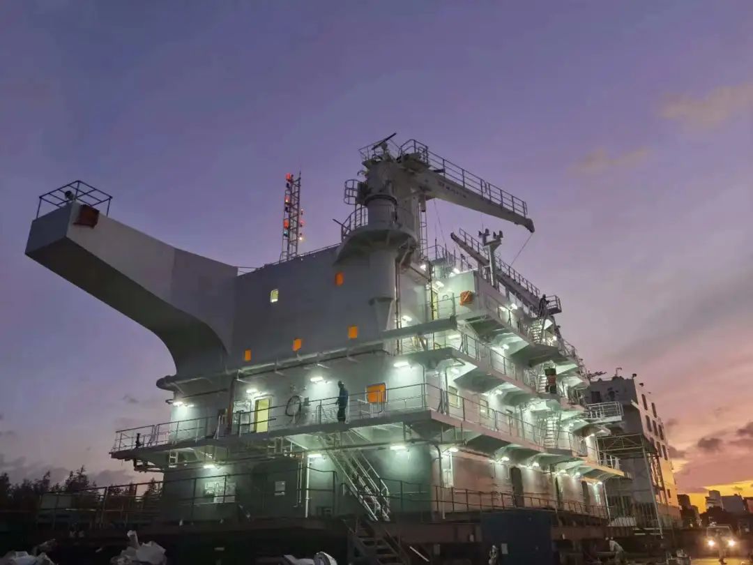 上建建造团队克服建造过程中的重重困难,通过对现场工作的有效组织与协调问题的快速响应,为该船上建舾装阶段达到较高的完整性状态交付提供了强有力的保障。此外,项目组对在建造过程中所辛勤付出的工作人员表示了诚挚的感谢,并期待在将来能够继续合作。