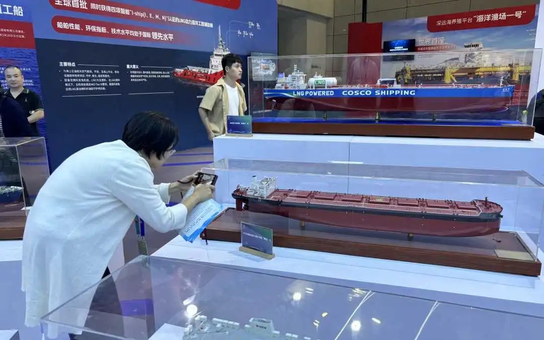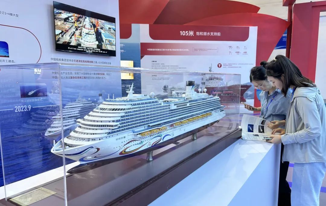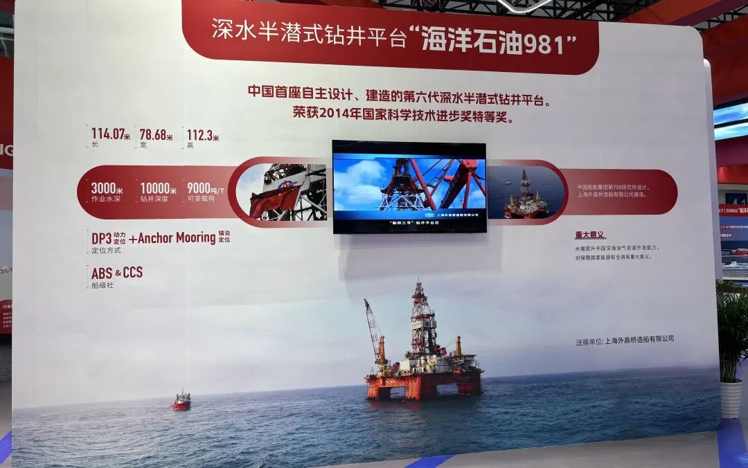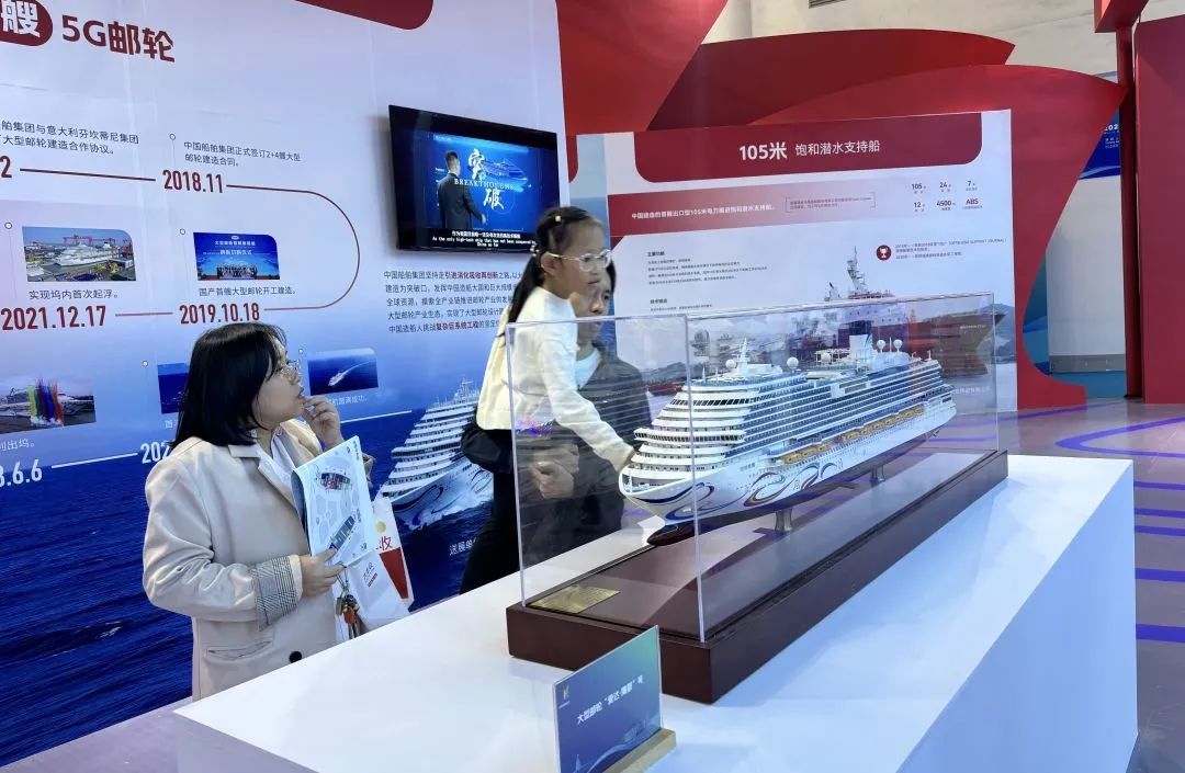建造的国产首艘大型邮轮“爱达·魔都”号、全球第一艘超大型智能矿砂船“明远”号以及3000米半潜式钻井平台“海洋石油981”在展会的新时代十年成果展大国重器篇亮相。