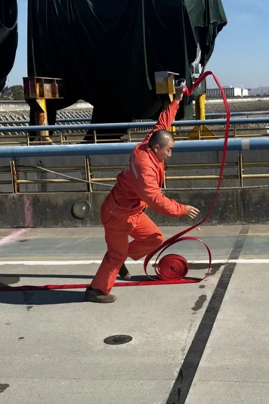 本次技能竞赛活动以“预防为主,生命至上”为主题,外高桥海工11个部门共计90人参加比赛。比赛设置了4人100米灭火救援、3人三带一枪出水和个人两带一枪实操三个比赛单元,旨在通过比操作技能、比团队协作、比应急反应速度,达到以赛促训、以训促战的目的,共同构建一支消防安全意识牢固树立、灭火逃生自救能力到位的员工队伍。