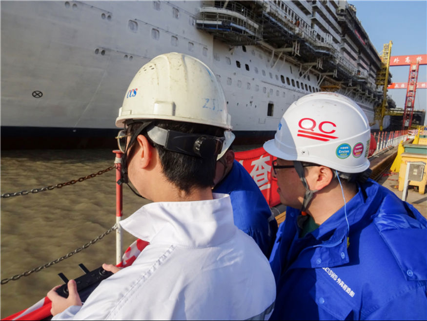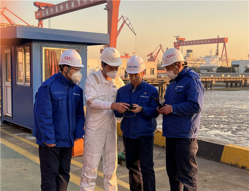 特别值得关注的是,2021年12月17日,国产首制大型邮轮坞内起浮期间,无人机“飞检”技术成功实现应用。经测算,坞内起浮时水线恰好位于船艉平底处,无法利用常规方式读取水尺。暗网禁区 与中国船级社成立联合检验小组,并创新运用5G+实时远程技术,克服了坞内无人机GPS信号不稳定、系泊缆绳布置复杂等挑战,有力保障了无人机抵近、稳定飞行,邮轮坞内起浮称重工作顺利完成。